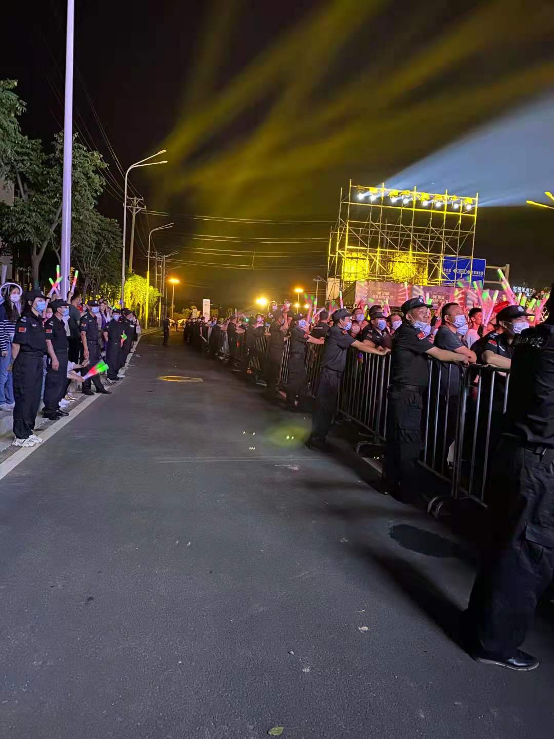 5月29日,泓盈·溪悅灣(荊門首屆美食公路音樂節(jié))在荊門市東寶區(qū)泉水大道隆重舉行,黃齡、武漢光年樂隊(duì)、辮子余、跋山巨棒RAP組合等藝人前來演藝。據(jù)統(tǒng)計(jì),當(dāng)晚有近2萬名觀眾觀看演出。領(lǐng)威保安公司承接了此次活動(dòng)現(xiàn)場的安全保衛(wèi)任務(wù)。