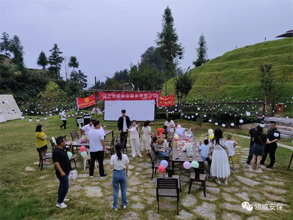 為豐富員工文化生活,加強公司團隊凝聚力,2023年8月25日湖北領(lǐng)威保安服務(wù)有限公司組織全體骨干員工及家屬共26人參加宜昌2日游團建活動——宜昌茶旅小鎮(zhèn)星空露營帳篷;萬畝高山茶園,采茶、制茶、品茶;無邊落日泳池一日暢游;美酒小燒烤,戶外卡拉OK,暢游大老嶺、藥王溪等。