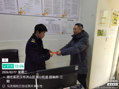 為了讓堅守崗位的一線員工過一個溫暖、喜慶、有意義的春節(jié),公司各區(qū)域運(yùn)營負(fù)責(zé)人主動放棄與家人團(tuán)聚的時光,在除夕、大年初一親自奔赴項目一線,為值班員工送上新春紅包和暖心祝福,與隊員們并肩作戰(zhàn),共慶新春。接過沉甸甸的紅包,感受著公司的關(guān)懷與牽掛,隊員們心里倍感溫暖、備受鼓舞,一聲聲“新年快樂”“馬年大吉”的祝福交織在一起,讓節(jié)日的氛圍愈發(fā)濃烈。