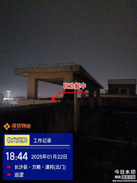 2025年1月21日18點(diǎn)35分左右,湖北領(lǐng)威保安公司湖南分公司駐方略瀟邦項(xiàng)目的隊(duì)長(zhǎng)高云炳,在巡邏時(shí)接到了業(yè)主的通知,10棟2單元樓頂有一業(yè)主企圖跳樓輕生。