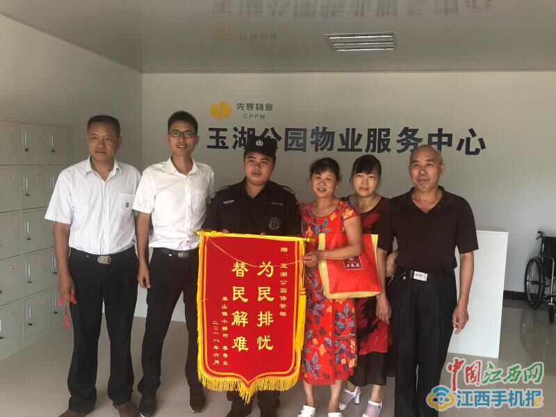 6月8日下午16:00左右,安保隊員方建端在火神廣場男廁所撿到了一個紫紅色的包包。經查看,包內有2本存折、2張銀行卡、身份證等有效物件,方建端迅速將錢包交至玉湖公園物業(yè)服務中心。隨后不久,失主在火神廣場焦急地尋找丟失的錢包。經和失主核實信息之后,服務中心將物品完好歸還。失主十分感激,贊揚玉湖公園保安認真負責、盡職盡責,送來一面錦旗以示感謝。